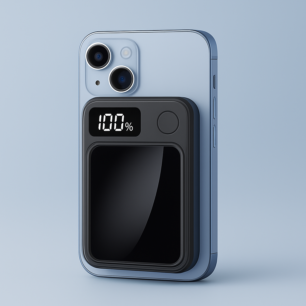 Deze compacte powerbank klikt u eenvoudig magnetisch vast op de achterkant van uw iPhone. Dankzij de ingebouwde MagSafe-technologie blijft de powerbank stevig op zijn plek, zelfs wanneer u uw telefoon actief gebruikt. Of u nu aan het bellen bent, een video bekijkt of aan het scrollen bent: uw iPhone blijft draadloos en veilig opladen, zonder gedoe met kabels.